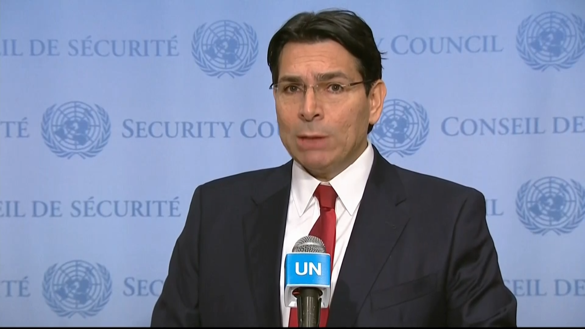 השגריר דני דנון נואם ומטיף נגד רעיון שתי המדינות לשני העמים ואף.